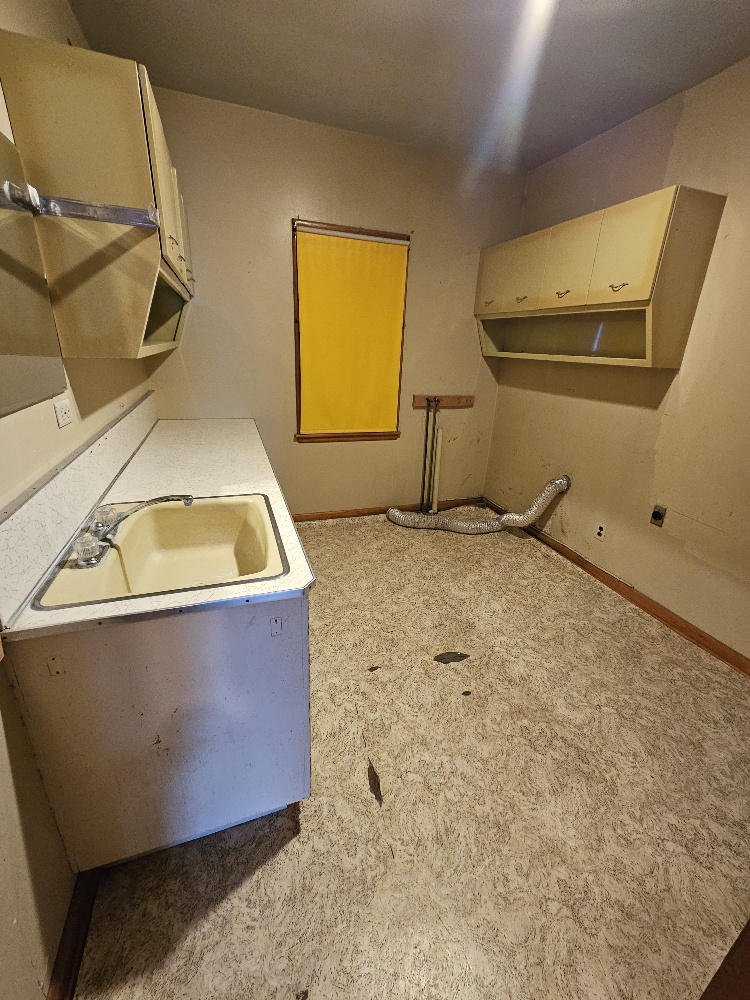 home has a dine-in kitchen, living room, bedroom, laundry room, 2