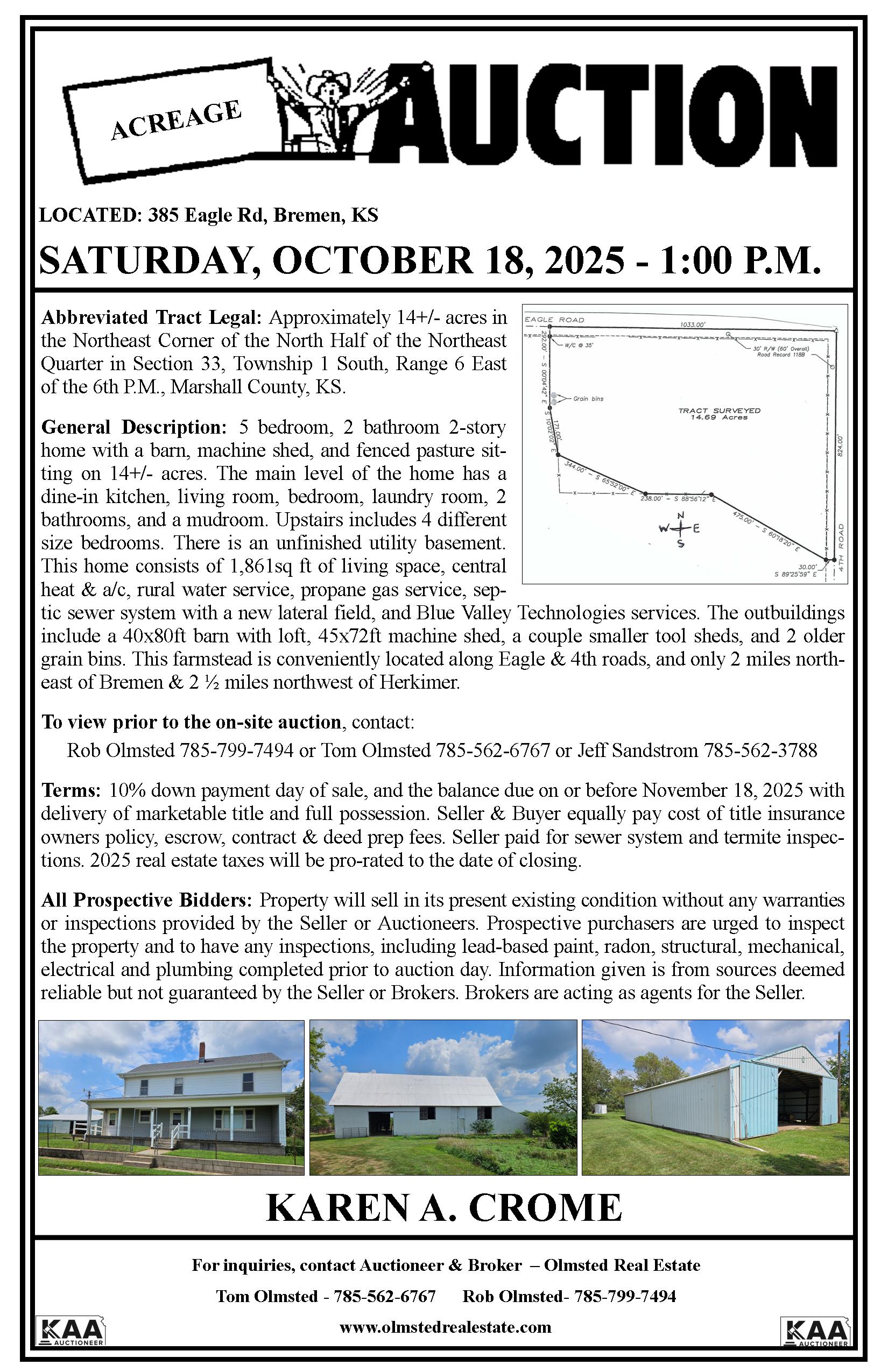 Auctioned on Saturday, October 18, 2025 at 1pm at the farmstead.